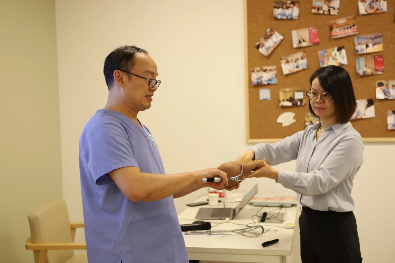 培訓內容涵蓋胎心監護、陰道助產、肩難產處理、產后出血急救、胎位異常糾正、孕產婦復蘇以及會陰撕裂傷縫合等多個關鍵領域。為確保培訓效果,實訓中心配備了先進的模擬設備和專業的指導老師。指導老師采用 “理論講解 + 操作演示 + 分組實操” 的模式,先結合臨床案例講解核心知識點與操作要點,再進行規范的操作演示,隨后讓學員分組進行實操練習,老師則在旁巡回指導答疑。