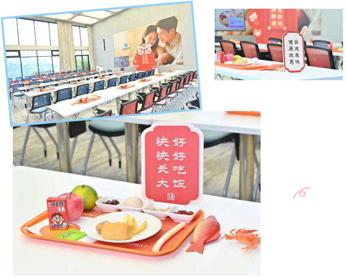 各類標語更添童趣與暖意——“好好吃飯,快快長大!”“嘗遍美味,健康聰慧!”……現場瞬間化身為一個充滿祝福與期待的成長空間。